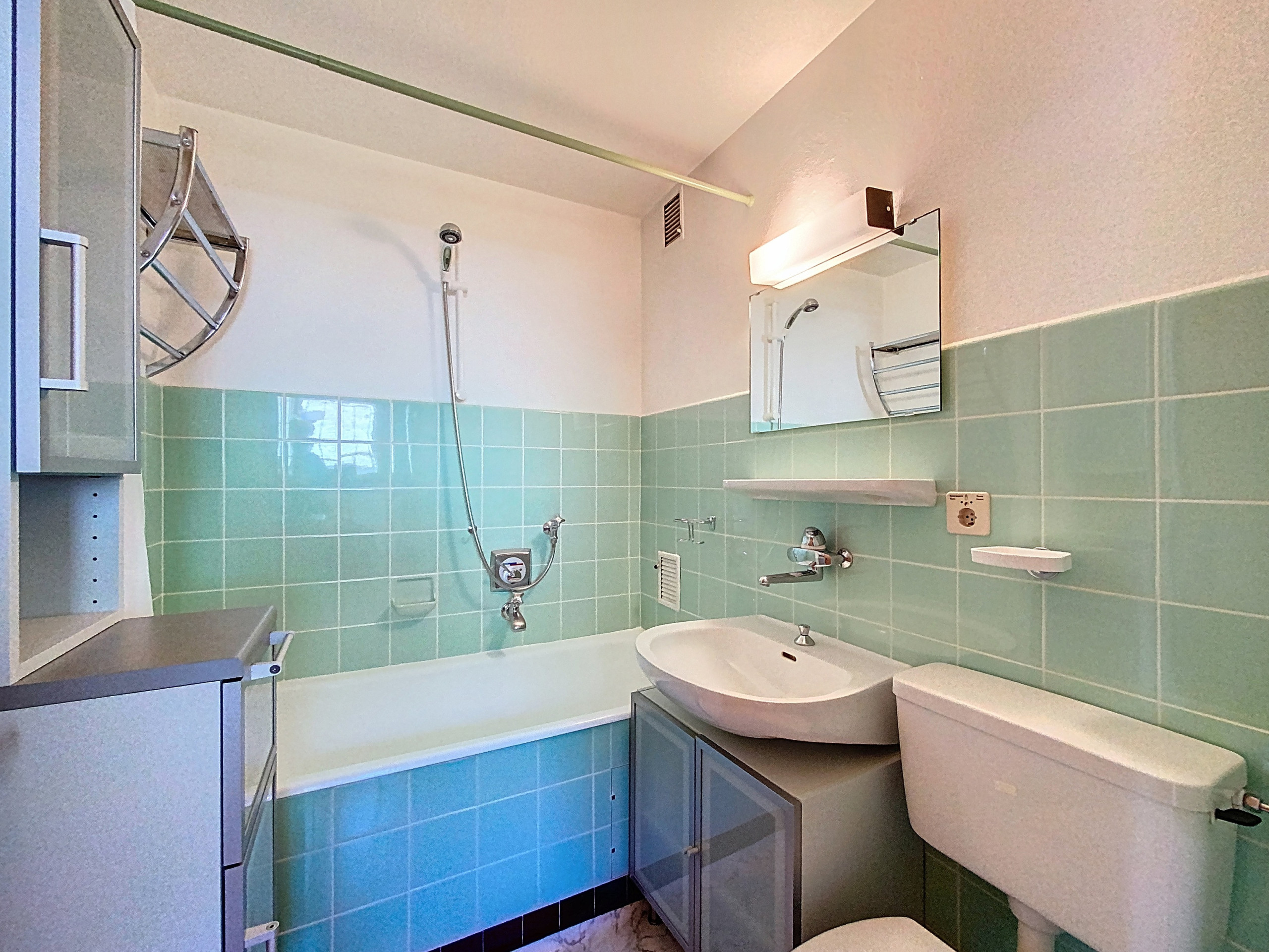 L'appartement est composé d'un séjour/salle à manger et d'une cuisine séparée. d'une chambre à coucher et une salle de bain avec baignoire. Le balcon orienté plein sud offre une magnifique vue.
