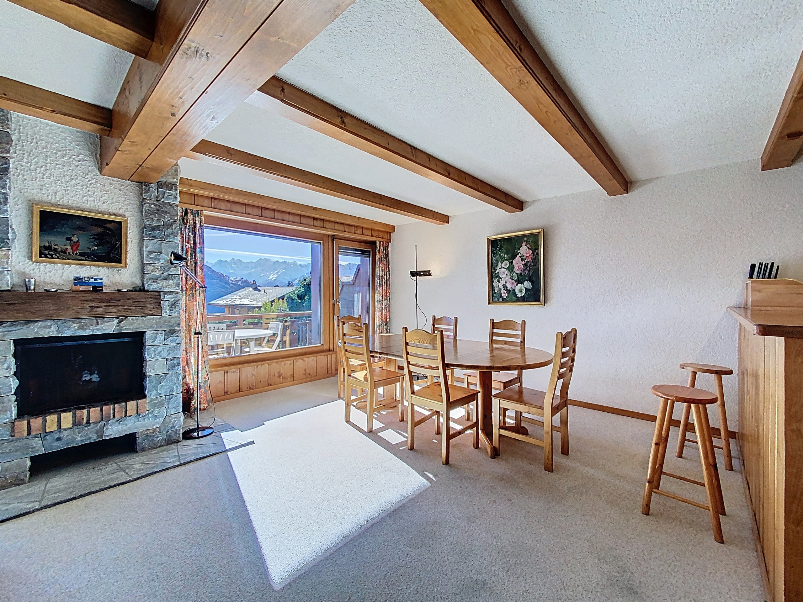 The fireplace will provide a pleasant atmosphere, while the balcony offers an outdoor space with a view of the mountains. A private garage is available to park your vehicle, as well as a ski locker.