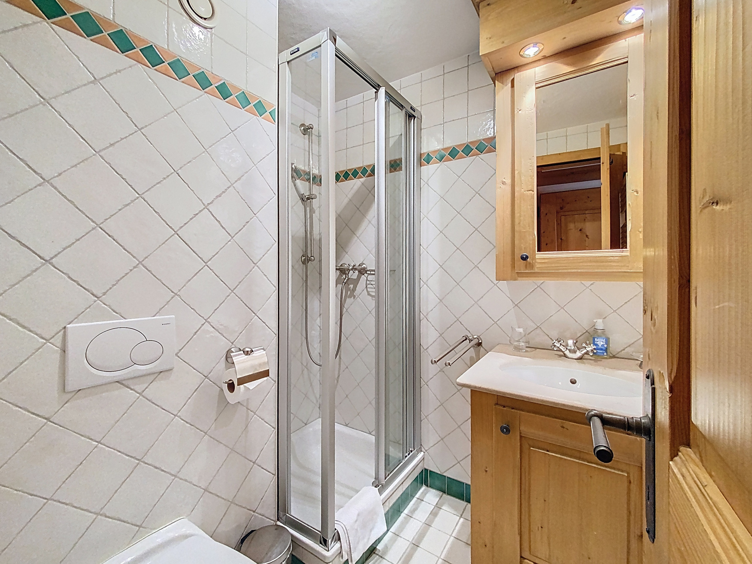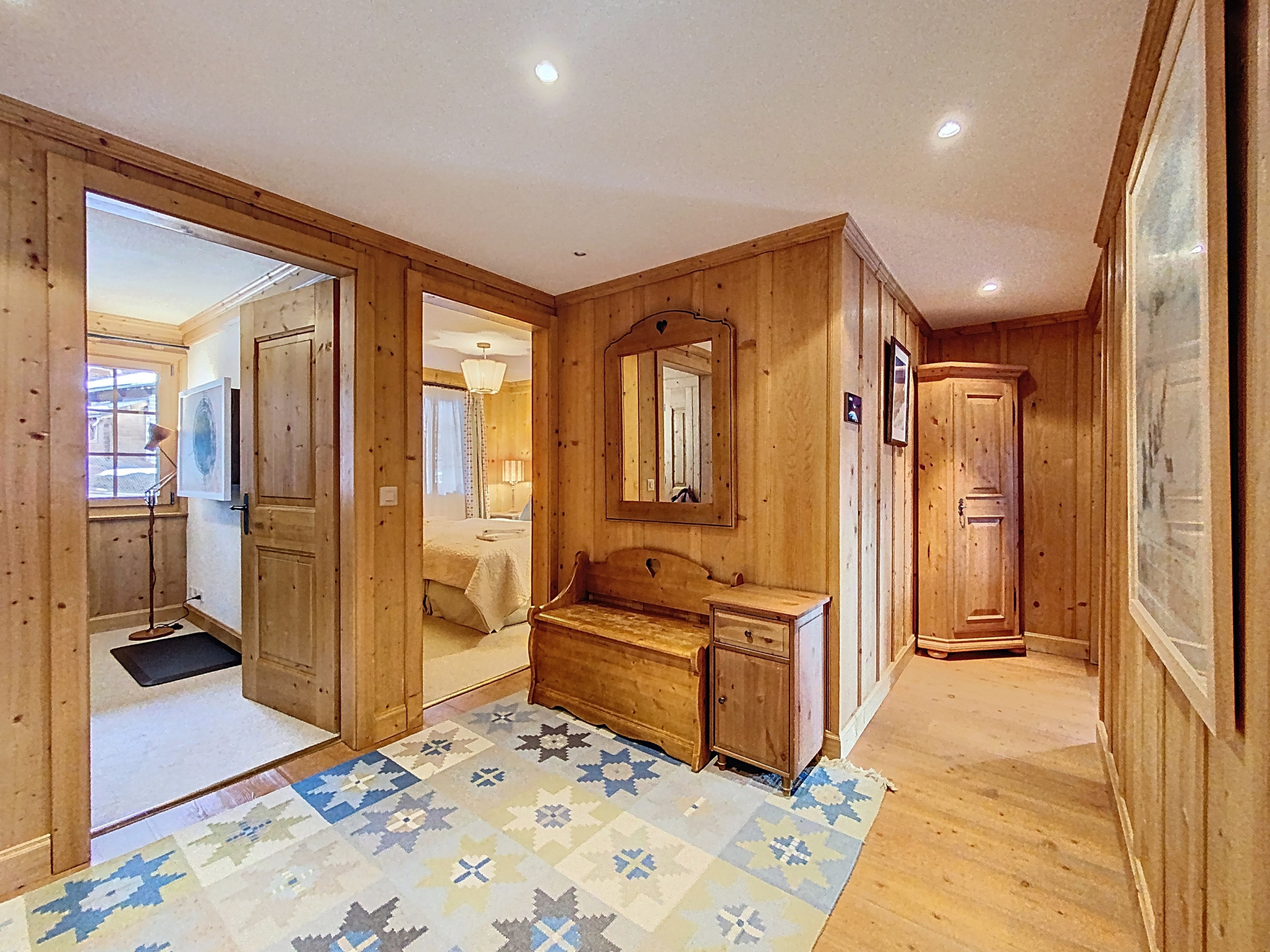Beautiful and spacious apartment on the 1st floor of a large building in the centre of Verbier. The apartment consists of an entrance hall, a living room (the fireplace is not usable), two large double-bedded rooms, a room with bunk beds and 2 single beds, a dining area, a fully equipped kitchen open to the living room, a bathroom with shower, a bathroom with bathtub and WC, a bathroom with shower and WC and a separate WC.