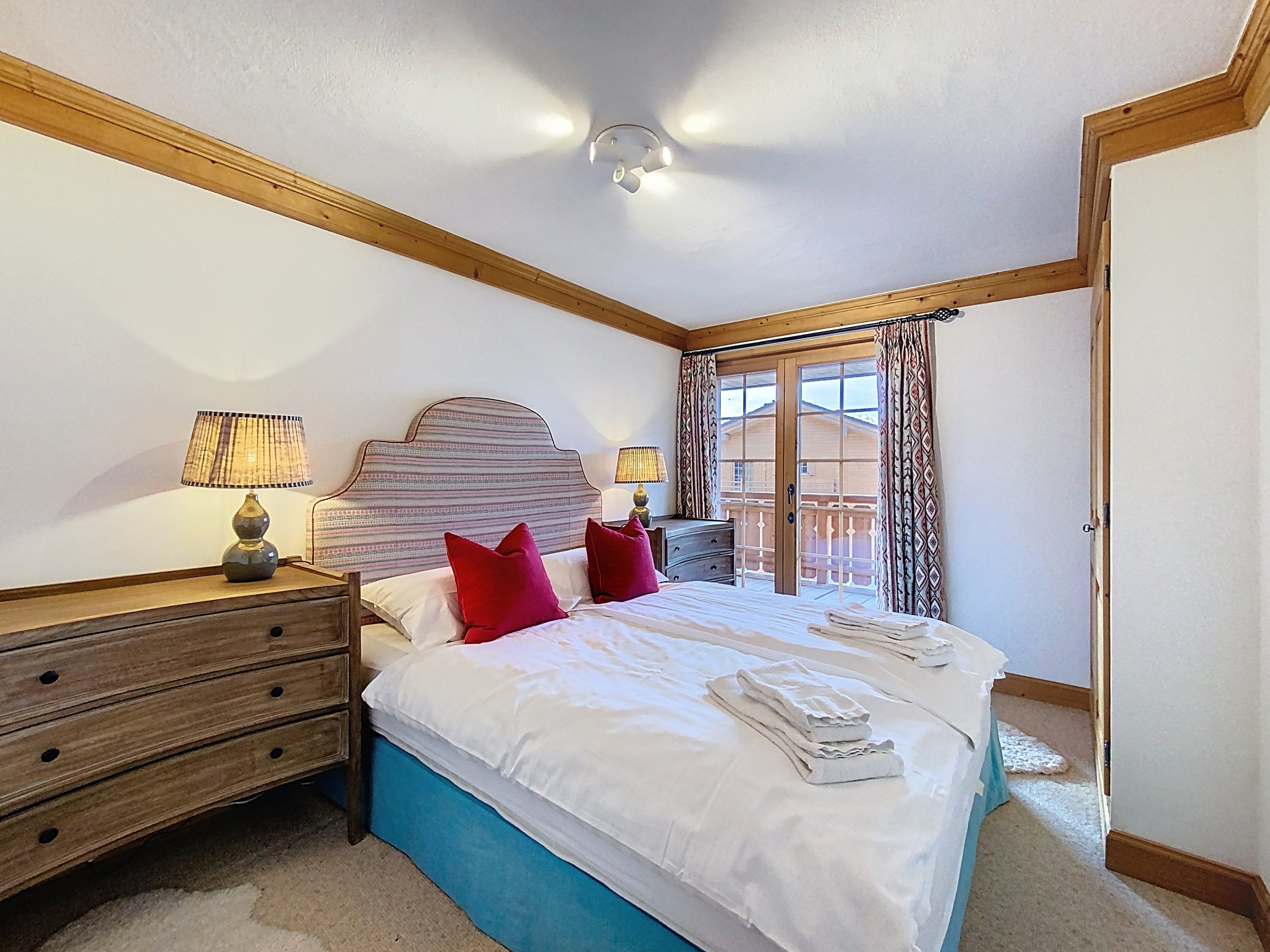 The apartment consists of an entrance hall, 3 double bedrooms, one en-suite with a jacuzzi bath, and then two further bathrooms with showers. The larger of the bathrooms has a washing machine and tumble dryer. The hall leads into a lovely open plan living, dining and fully equipped kitchen area with a balcony all around making this a beautifully light space, perfect for relaxing in after a day skiing.